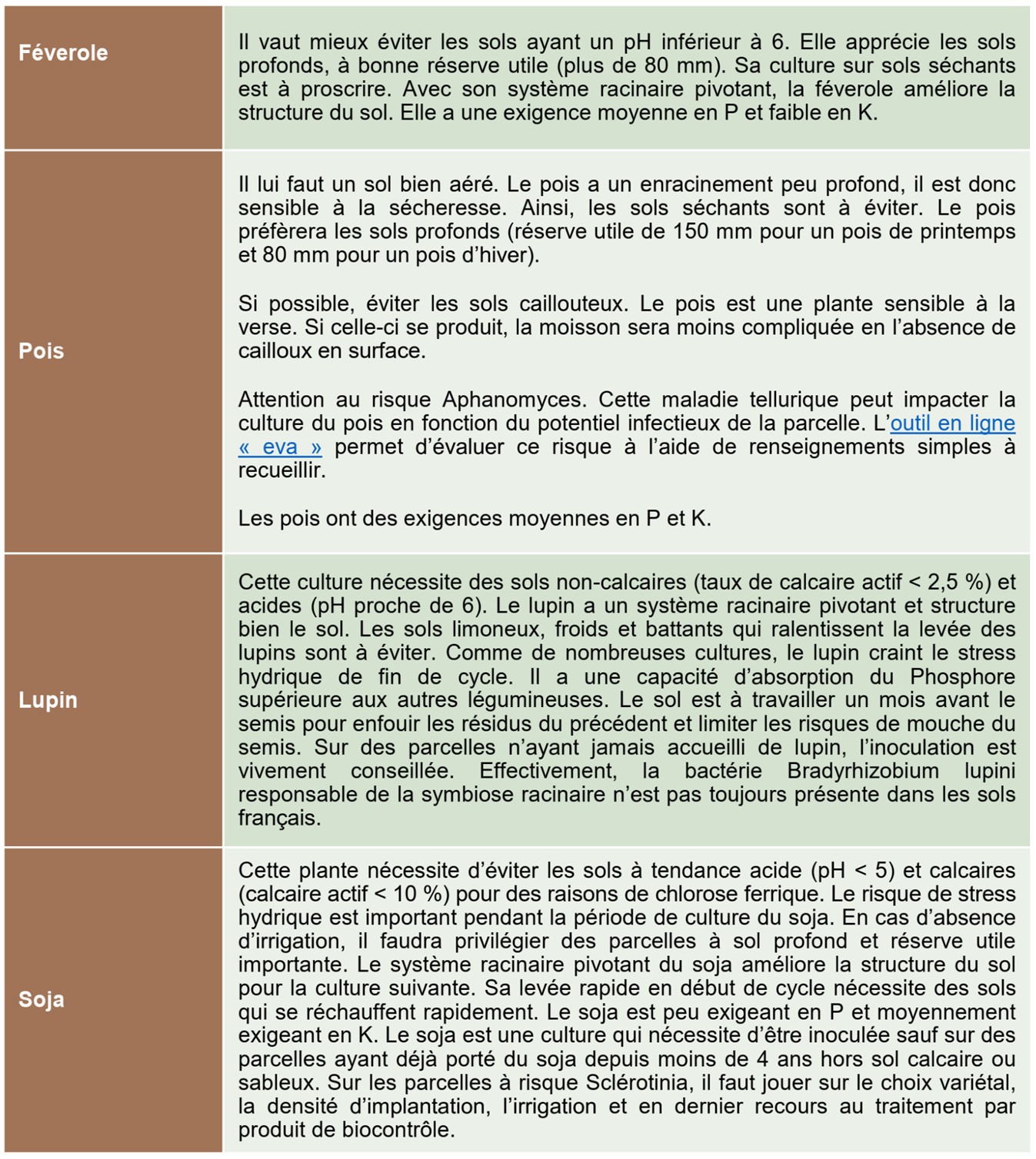 Pour le pois et la féverole, les leviers techniques ciblés sont les suivants :